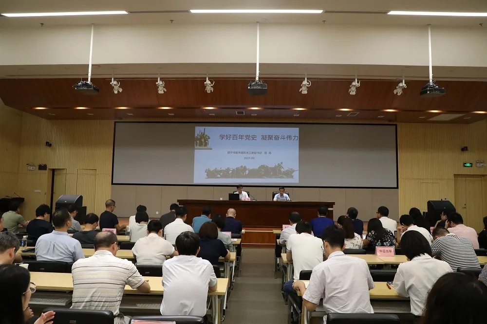為幫助公司黨員干部更好地理解和開展黨史學(xué)習(xí)教育,6月24日,公司黨委邀請了南寧市委市直機(jī)關(guān)工委副書記藍(lán)迅為公司黨員干部上了一堂生動的黨史學(xué)習(xí)教育專題黨課,公司黨委書記韋文學(xué)主持會議,公司全體黨員和中層以上領(lǐng)導(dǎo)干部近160余人現(xiàn)場聆聽了專題黨課。