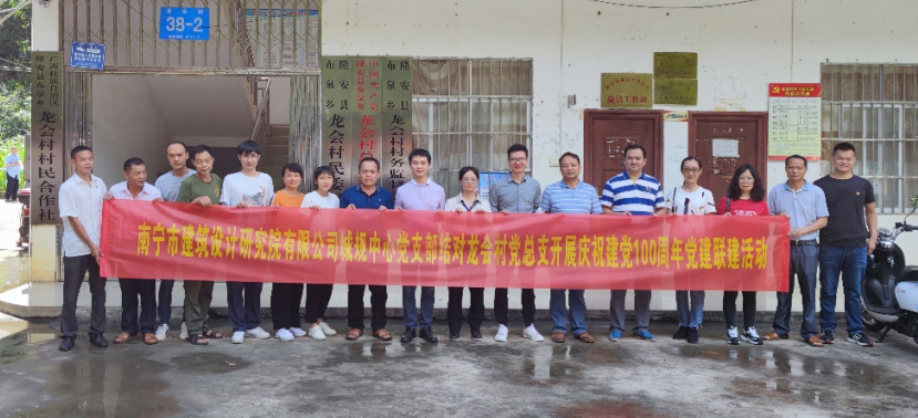 7月9日,南寧市建筑設(shè)計(jì)研究院有限公司城規(guī)中心黨支部聯(lián)合隆安縣退役軍人事務(wù)局黨支部、隆安縣布泉鄉(xiāng)龍會(huì)村黨總支部在布泉鄉(xiāng)龍會(huì)村開展慶祝建黨100周年黨建聯(lián)建活動(dòng)。隆安縣布泉鄉(xiāng)鄉(xiāng)長方寧、副鄉(xiāng)長黃玉勤,城規(guī)中心黨支部書記黃炎佳、總經(jīng)理韋波,隆安縣退役軍人事務(wù)局副局長李大安以及布泉鄉(xiāng)龍會(huì)村黨總支部黨員代表共計(jì)80余人參加本次活動(dòng)。