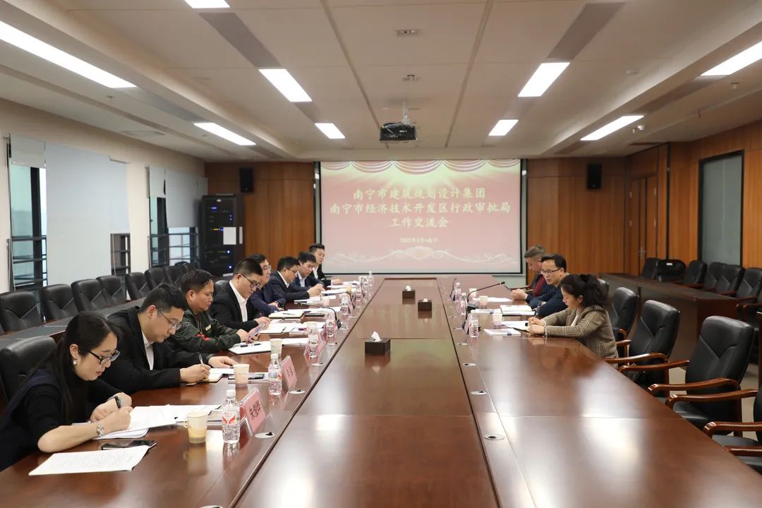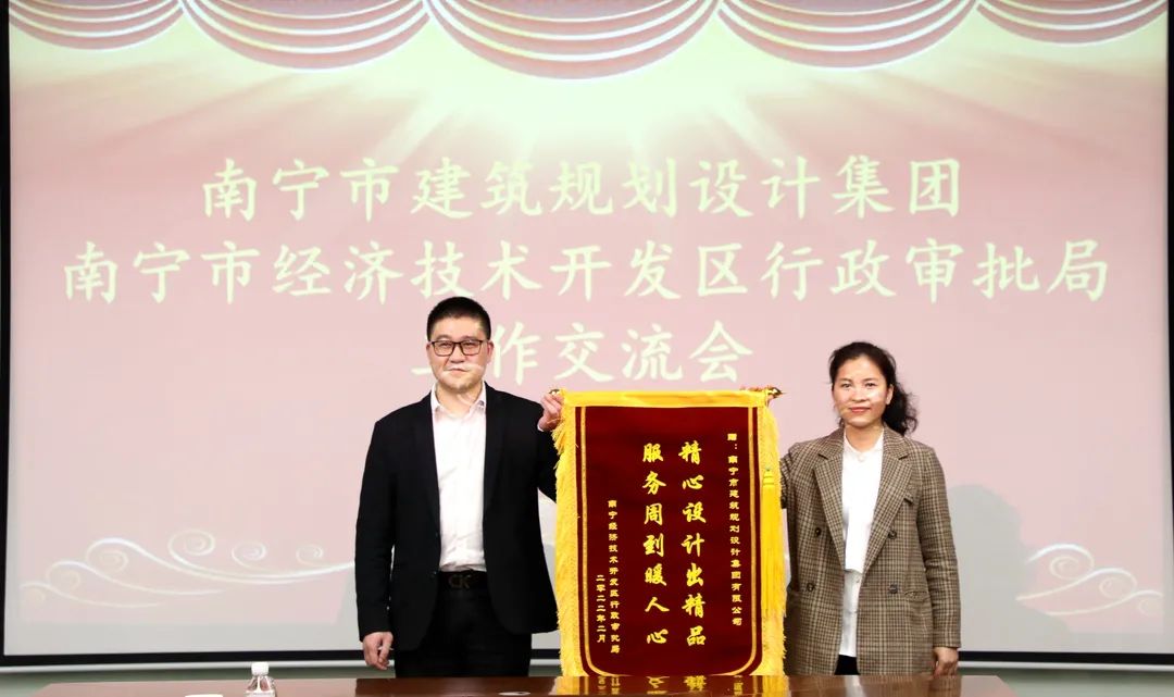 在工作交流會上,何建匯局長充分肯定了我集團服務團隊的實力和表現。他表示,2021年以來,經開區為了進一步優化營商環境,將政策落實到實處,推出的“拿地即開工”項目服務模式,積極推動轄區項目在拿地前辦理完各項審批手續,在此期間,南寧市建筑規劃設計集團作為項目的設計咨詢單位,提前介入,高效配合,展現出專業的服務水平,有力地推動了柳鋼配套卿蕊捷項目成為臨空經濟示范區首個成功實施 “拿地即開工”項目。